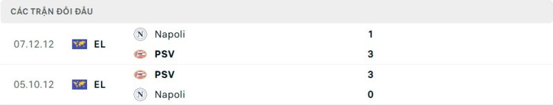 Thành tích đối đầu của PSV Eindhoven vs Napoli