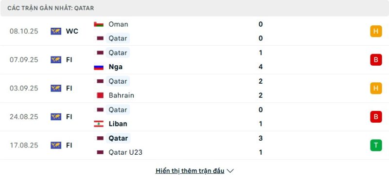 Thống kê phong độ gần đây Qatar vs UAE