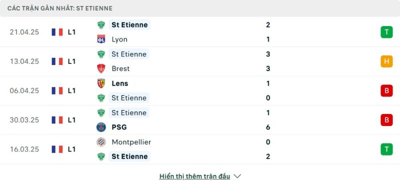 5 trận gần nhất của Saint-Étienne: W-D-L-L-W
