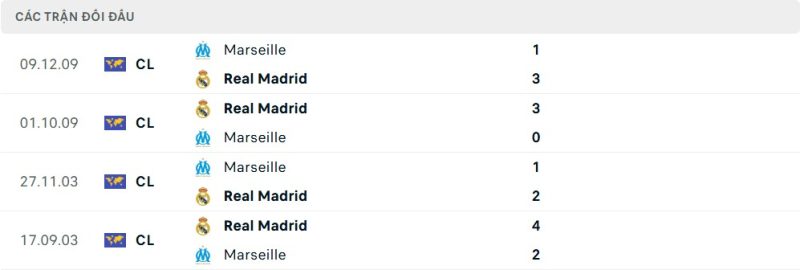 Thống kê phong độ gần đây Real Madrid vs Marseille