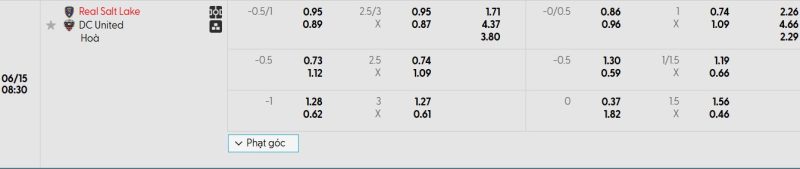Bảng Tỷ lệ kèo bóng đá Real Salt Lake vs DC United
