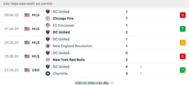5 trận gần nhất của DC United: L-W-D-L-D