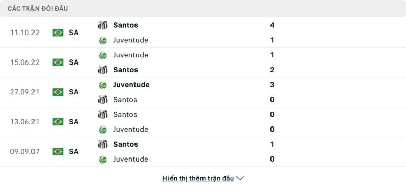 Bảng Tỷ lệ kèo bóng đá Santos vs Juventude