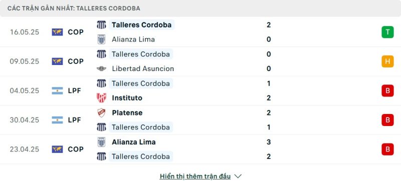 5 trận gần nhất của Talleres: W-D-L-L-L