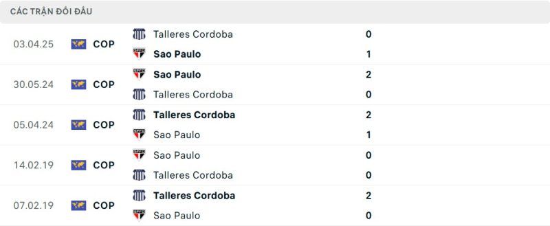 Thống kê phong độ gần đây São Paulo vs Talleres