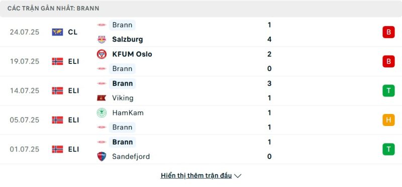 - Phong độ của Brann