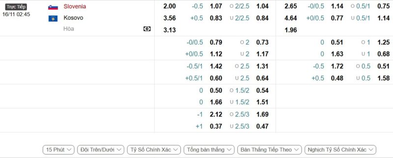 Bảng Tỷ lệ kèo bóng đá Slovenia vs Kosovo
