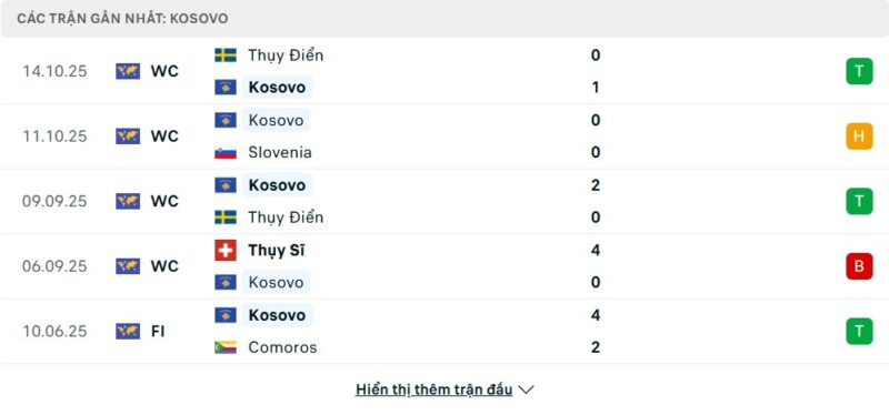 Thống kê phong độ gần đây Slovenia vs Kosovo