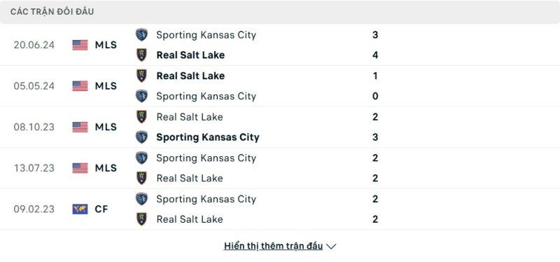 Thành tích đối đầu của Sporting Kansas City vs Real Salt Lake