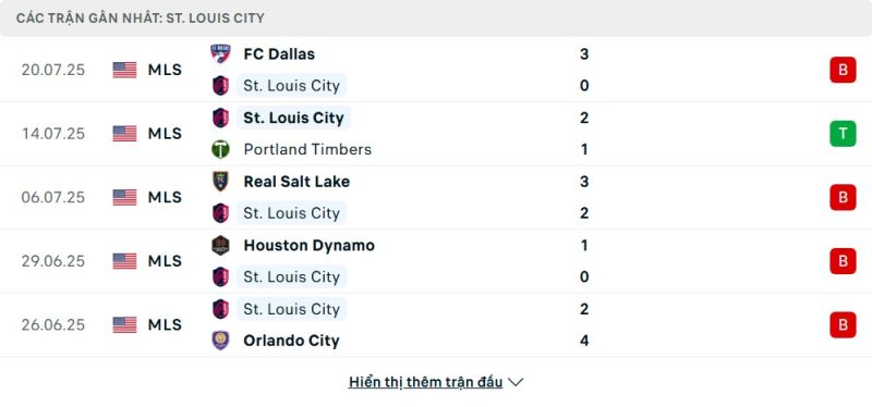 St. Louis City đang rơi vào khủng hoảng với vị trí áp chót miền Tây. Dù vừa có chiến thắng hiếm hoi trước Portland Timbers, nhưng nhìn tổng thể, đội bóng này đã để thua phần lớn các trận gần đây, bao gồm thất bại trước FC Dallas và Real Salt Lake. Lối chơi thiếu gắn kết và hàng thủ dễ bị khai thác khiến họ thường xuyên đánh mất thế trận. Áp lực phải thắng có thể khiến St. Louis City tiếp tục chơi thiếu kiểm soát trong lần tiếp đón đối thủ mạnh hơn.