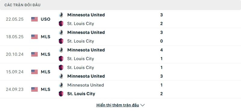 Thành tích đối đầu của St. Louis City vs Minnesota United