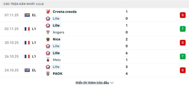 • Phong độ của Lille