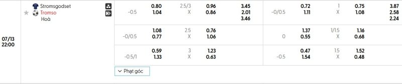 Bảng Tỷ lệ kèo bóng đá Strømsgodset vs Tromsø