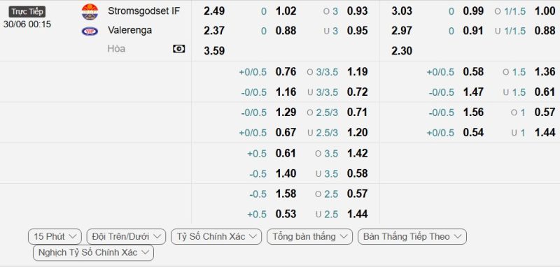 Bảng Tỷ lệ kèo bóng đá Strømsgodset vs Vålerenga IF