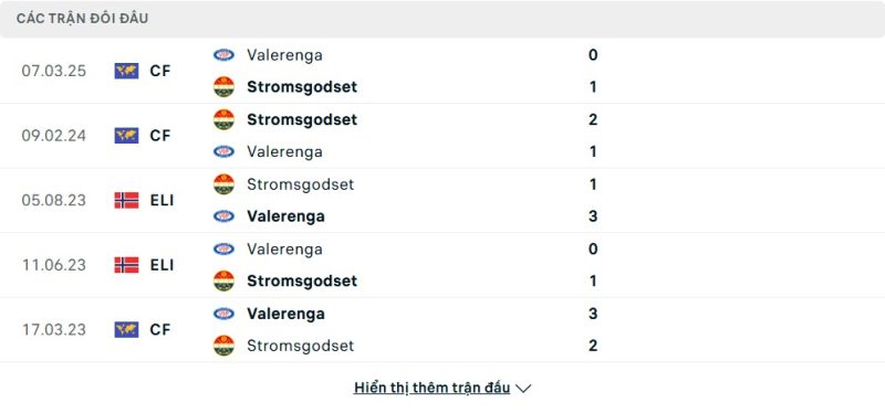 Thành tích đối đầu của Strømsgodset vs Vålerenga IF