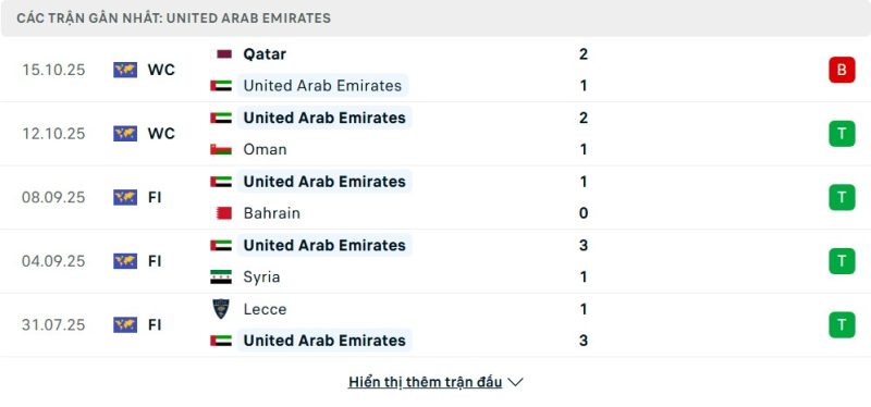 UAE bước vào trận đấu quan trọng này với hành trang là phong độ tương đối ổn định, mặc dù không phải là xuất sắc. Trên bảng xếp hạng FIFA, họ là một trong những đội tuyển có thứ hạng cao tại châu Á. Trong giai đoạn vừa qua của vòng loại, UAE đã cho thấy sự thất thường khi để thua trước Qatar và Iran, nhưng cũng kịp giành những chiến thắng quan trọng, đặc biệt là trận thắng 2-1 trước Oman. Gần đây, đội chủ nhà cũng có những kết quả giao hữu rất tốt khi toàn thắng cả ba trận, bao gồm chiến thắng 1-0 trước Bahrain và 3-1 trước Syria.