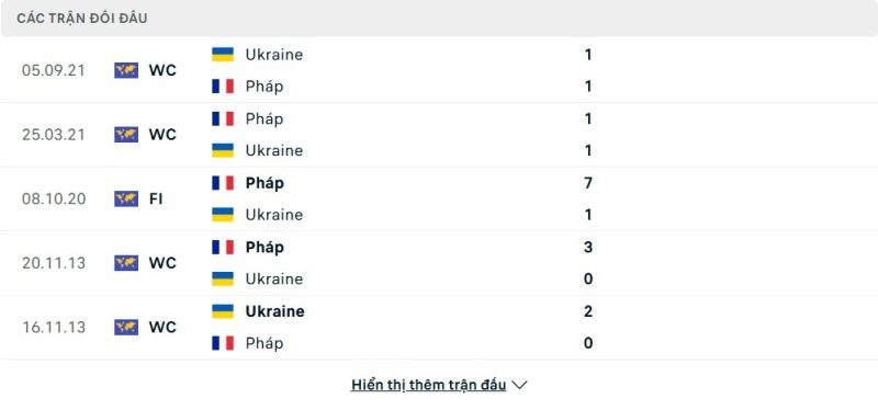 Thống kê phong độ gần đây Ukraina vs Pháp