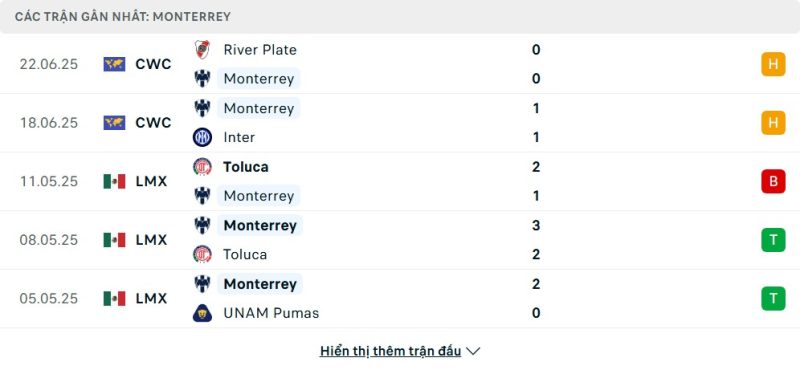 Bên kia chiến tuyến, Monterrey vẫn đang nuôi hy vọng đi tiếp. Dù chưa có chiến thắng nào, đại diện từ Mexico đã giành được 2 điểm sau hai trận hòa liên tiếp trước Inter Milan 1–1 và River Plate 0–0. Dấu ấn lớn nhất của Monterrey là hàng phòng ngự chắc chắn cùng lối đá kỷ luật, rất biết cách kiểm soát thế trận. Họ buộc cả River Plate lẫn Inter Milan phải chia điểm, và giờ đây chỉ cần một chiến thắng trước Urawa là có thể cạnh tranh tấm vé đi tiếp tùy theo kết quả trận đấu còn lại.